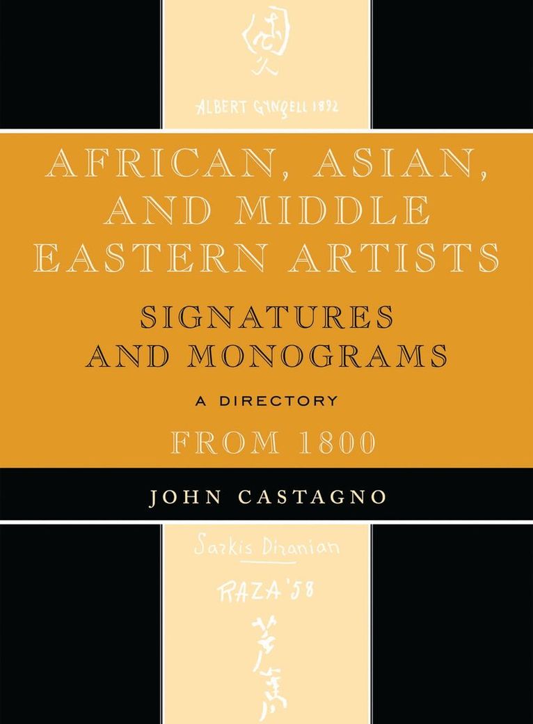 John Castagno's Artists' Signatures and Monograms have become the standard reference source for galleries, museums, libraries, and collectors around the world. Whether used to identify, authenticate, or verify signatures and works of both well-known and little-known artists, Castagno's work has no equal.In this new volume, Castagno has collected the signatures and monograms of artists from Africa, Asia, and the Middle East—including signature examples of artists from China, India, Japan, South Africa, Israel, and many other countries. In addition to the standard signature entries, the book contains sections for monograms and initials, common surname signatures, alternative surname signatures, and symbols. All artists are listed with the most updated information on nationality, birth and/or death dates. The entries direct the researcher to many biographical and bibliographical sources not found on web site searches, and many of the resources offer additional references. Several individual listings provide gallery referrals and catalog auction dates, which can be used to buy or sell a particular artist's work.The use of African, Asian and Middle Eastern Artists Signatures and Monograms From 1800: A Directory provides the researcher a reference tool not duplicated elsewhere—one that will save many hours of research.
