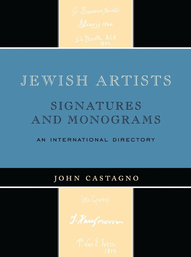 John Castagno's Artists' Signatures and Monograms have become the standard reference source for galleries, museums, libraries, and collectors around the world. Whether used to identify, authenticate, or verify signatures and works of both well-known and little-known artists, Castagno's work has no equal.In this new volume, Castagno has collected more than 1,100 signatures and monograms of Jewish artists, as well as signatures of artists whose work reflects Jewish themes. In addition to the standard signature entries found in Castagno's other books, this volume features additional biographical information, providing a more complete profile of the artist and his or her work.All artists are listed with the most updated information on nationality, birth and/or death dates. The entries direct the researcher to many biographical and bibliographical sources not found on web site searches, and many of the resources offer additional references. Several individual listings provide gallery referrals and catalog auction dates, which can be used to buy or sell a particular artist's work.The use of Jewish Artists: Signatures and Monograms provides the researcher a reference tool not duplicated elsewhere: one that will save many hours of research.