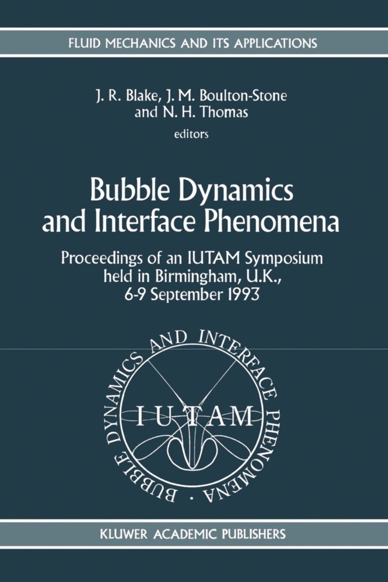 This volume contains papers presented at the IUTAM Symposium on Bubble Dynamics and Interface Phenomena held at the University of Birmingham from 6-9 September 1993. In many respects it follows on a decade later from the very successful IUTAM Symposium held at CALTECH in June 1981 on the Mechanics and physics of bubbles in liquids which was organised by the late Milton Plesset and Leen van Wijngaarden. The intervening period has seen major development with both experiment and theory. On the experimental side there have been ad vances with very high speed photography and data recording that provide detailed information on fluid and interface motion. Major developments in both computer hardware and software have also led to extensive improvement in our understand ing of bubble and interface dynamics although development is still limited by the sheer complexity of the laminar and turbulent flow regimes often associated with bubbly flows. The symposium attracts wide and extensive interest from engineers, physical, chemical, biological and medical scientists and applied mathematicians. The sci entific committee sought to achieve a balance between theory and experiment over a range of fields in bubble dynamics and interface phenomena. It was our intention to emphasise both the breadth and recent developments in these various fields and to encourage cross-fertilisation of ideas on both experimental techniques and theo retical developments. The programme, and the proceedings recorded herein, cover bubble dynamics, sound and wave propagation, bubbles in flow, sonoluminescence, acoustic cavitation, underwater explosions, bursting bubbles and ESWL.