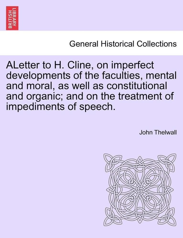 Aletter to H. Cline, on Imperfect Developments of the Faculties, Mental and Moral, as Well as Constitutional and Organic; And on the Treatment of Impediments of Speech.