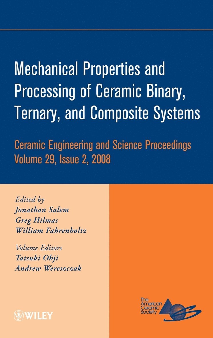 Proceeding of the 42nd International Conference on Advanced Ceramics and Composites, Ceramic Engineering and Science Proceedings Volume 39, Issue 2, 2018Jonathan Salem, Dietmar Koch, Peter Mechnich, Mihails Kusnezoff, Narottam Bansal, Jerry LaSalvia, Palani Balaya, Zhengyi Fu, and Tatsuki Ohji, EditorsValerie Wiesner and Manabu Fukushima, Volume EditorsThis proceedings contains a collection of 25 papers from The American Ceramic Society’s 41st International Conference on Advanced Ceramics and Composites, held in Daytona Beach, Florida, January 21-26, 2018. This issue includes papers presented in the following symposia:• Symposium 1: Mechanical Behavior and Performance of Ceramics and Composites• Symposium 2: Advanced Ceramic Coatings for Structural, Environmental, and Functional Applications• Symposium 3: 15th International Symposium on Solid Oxide Fuel Cells (SOFC)• Symposium 4: Armor Ceramics: Challenges and New Developments• Symposium 6: Advanced Materials and Technologies for Direct Thermal Energy Conversion and Rechargeable Energy Storage• Symposium 8: 12th International Symposium on Advanced Processing & Manufacturing