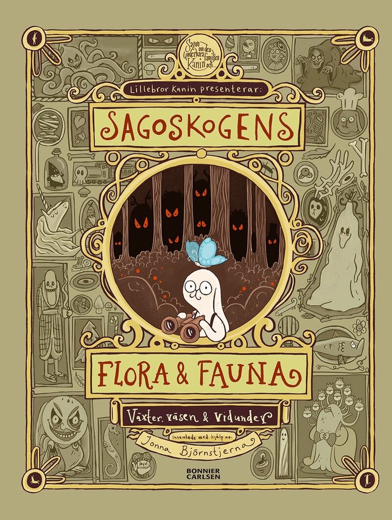 Välkommen in i den underbara Sagoskogens magiska och fascinerande värld! För alla som älskar familjen Kanin och deras äventyr såväl i den underbara som i den läskiga delen av Sagoskogen kommer här en perfekt introduktion och fördjupning i Sagovärldens undersköna och läskiga platser, invånare, växter och miljöer. Lillebror Kanin guidar läsaren runt bland fascinerande monster, små själfulla gläntor, beskriver alla elaka småtomtar och avskyvärda monster. Och växter!