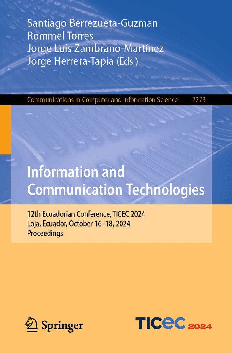 This book constitutes the refereed proceedings of the 12th Ecuadorian Conference on Information and Communication Technologies, TICEC 2024, held in Loja, Ecuador, during October 16–18, 2024. The 24 full papers presented here were carefully reviewed and selected from 74 submissions.