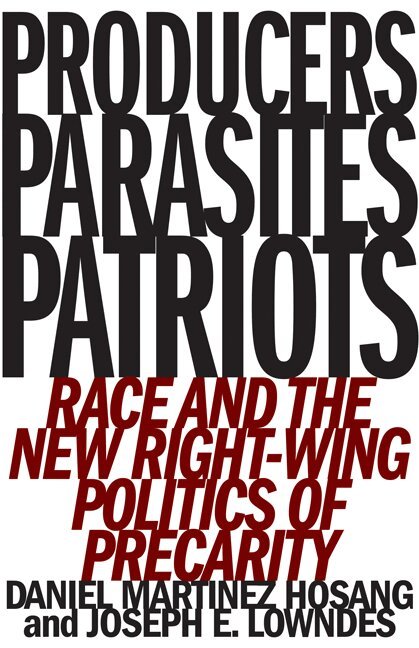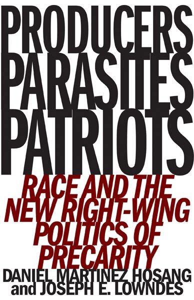The shifting meaning of race and class in the age of Trump The profound concentration of economic power in the United States in recent decades has produced surprising new forms of racialization. In Producers, Parasites, Patriots, Daniel Martinez HoSang and Joseph E. Lowndes show that while racial subordination is an enduring feature of U.S. political history, it continually changes in response to shifting economic and political conditions, interests, and structures. The authors document the changing politics of race and class in the age of Trump across a broad range of phenomena, showing how new forms of racialization work to alter the economic protections of whiteness while promoting some conservatives of color as models of the neoliberal regime. Through careful analyses of diverse political sites and conflicts-racially charged elections, attacks on public-sector unions, new forms of white precarity, the rise of black and brown political elites, militia uprisings, multiculturalism on the far right-they highlight new, interwoven deployments of race in the ascendant age of inequality. Using the concept of “racial transposition,” the authors demonstrate how racial meanings and signification can be transferred from one group to another to shore up both neoliberalism and racial hierarchy.From the militia movement to the Alt-Right to the mainstream Republican Party, Producers, Parasites, Patriots brings to light the changing role of race in right-wing politics.