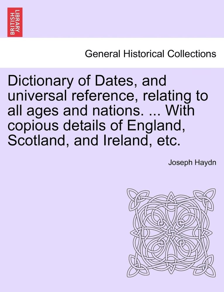 Dictionary of Dates, and universal reference, relating to all ages and nations. ... With copious details of England, Scotland, and Ireland, etc.Eighth