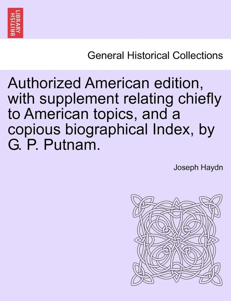 Authorized American edition, with supplement relating chiefly to American topics, and a copious biographical Index, by G. P. Putnam.