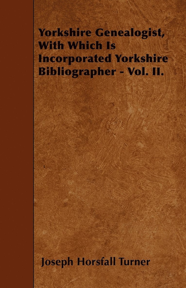 Yorkshire Genealogist, With Which Is Incorporated Yorkshire Bibliographer - Vol. II.