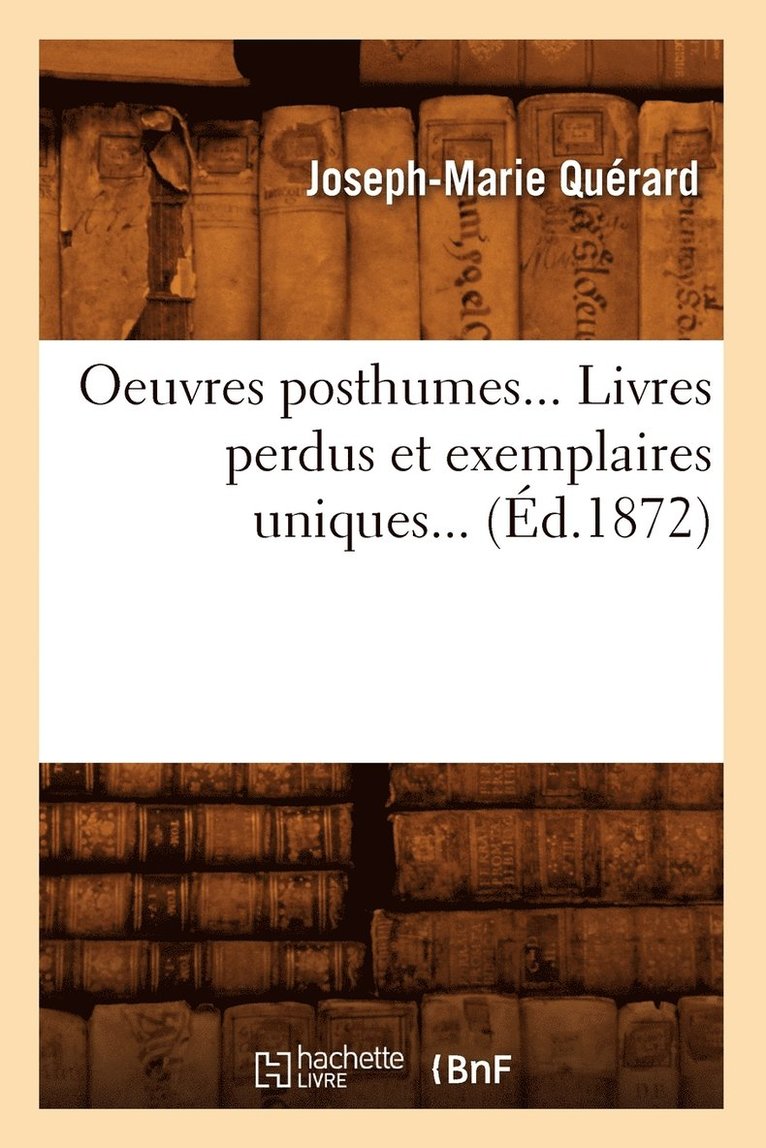 Livres Perdus Et Exemplaires Uniques. (OEuvres Posthumes De J.M. Quérard, Publ. Par G. Brunet).