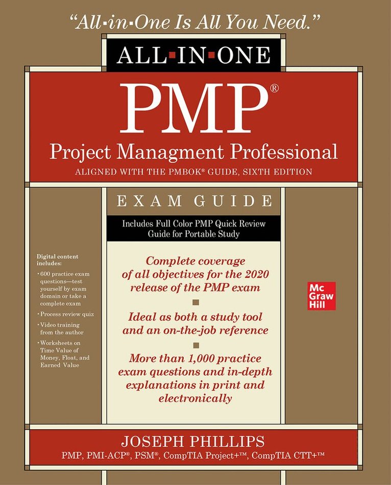 This comprehensive resource offers complete coverage of all the material included on the Project Management Professional exam. You’ll find learning objectives at the beginning of each chapter, exam tips, practice exam questions, and in-depth explanations. Written by a leading project management consultant and trainer, PMP Project Management Professional All-in-One Exam Guide will help you pass the exam with ease and will also serve as an essential on-the-job reference.