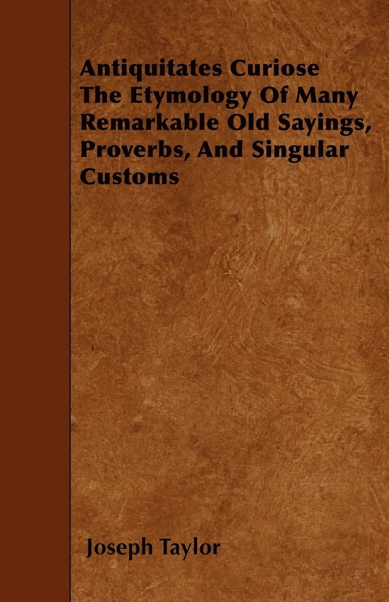 Antiquitates Curiose The Etymology Of Many Remarkable Old Sayings, Proverbs, And Singular Customs