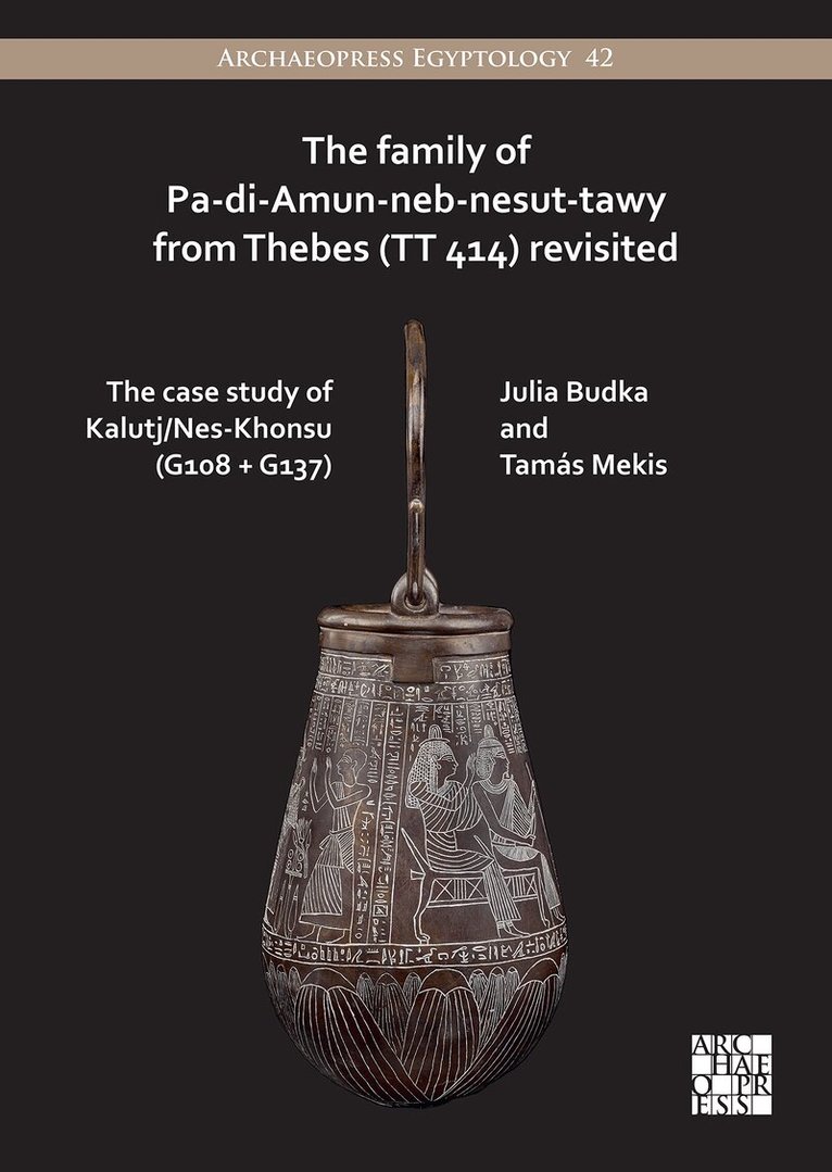The Family of Pa-di-Amun-neb-nesut-tawy from Thebes (TT 414) revisited provides fresh material about the identity of one of the key figures of the family that reused the Saite tomb of Ankh-Hor (TT 414) in the Asasif from the 4th century BCE onwards. It is the woman Kalutj/Nes-Khonsu, who was previously listed in the genealogical register of TT 414 as Pa-di-Amun-neb-nesut-tawy’s daughter and wife of one of his sons, Hor. By examining objects found by the agents of the consuls in the 19th century CE and those found by the Austrian mission in the 1970s in TT 414 and in wider Theban contexts, the authors are able to identify Kalutj/Nes-Khonsu, wife of Hor, as another, until now overlooked individual, separate from his sister with the same name. The examination of the funerary assemblage of Kalutj/Nes-Khonsu and of objects belonging to her husband, daughter and sons reveals not only details of Late Dynastic and Ptolemaic burial customs in Thebes but also additional information on the priesthood of Khonsu and of the sacred baboons in this era.This new identification of a previously overlooked person, the mistress of the house and daughter of the first prophet of Amun, Kalutj/Nes-Khonsu (G108 + G137), demonstrates that the finds from TT 414 are still far from being processed in their totality. This material has the potential to provide answers to some of the open questions regarding Late Dynastic/Ptolemaic Thebes and to contextualise funerary assemblages.