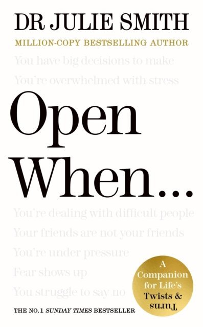 "This is the book for us all, for ourselves when we need to find a way through, for our children as they fly the nest, our friends that live out of reach, and for our family when we can't find the words to say."-----------------------------------------------------------------------This is the book for life's twists and turns, when being human starts to get complicated.A must-have companion to Dr Julie's international bestseller Why Has Nobody Told Me This Before?, which taught us the skills to strengthen our future mental health, Open When... is the book to turn to when you find yourself in the eye of the storm.Within this book are a series of Open When style letters from Dr Julie to help navigate the moments of overwhelm, confusion or self-doubt that we all face when life gets messy. Offering calm, clarity and a laser focus on the best way forward, each personal letter is followed by real-time tools that will help you re-frame the situation and decide on your next move.Every chapter covers a new scenario; universal problems that each of us will likely face at some point. So, whether you are experiencing stress, pressure to perform, dealing with difficult people, trying to fit in, making big decisions, arguments with your partner, or big emotions are that causing anxiety, Open When... brings the words you need to hear to get back on the front foot, feeling ready to take on everything life throws your way.---------------------------------------------------------------------------Praise for Why Has Nobody Told Me This Before?'Sound wisdom, easy to gulp down. I'm sure this book is already helping lots of people.' MATT HAIG, bestselling author of REASONS TO STAY ALIVE'A toolkit of deceptively simple strategies for life's troubles. Everyone could benefit from the wisdom of Dr Smith' i 'BEST NON-FICTION BOOKS OF 2022''Julie Smith is the psychology teacher you wish you'd had at school' EVENING STANDARD'This book is a goldmine. I truly treat it like a handbook now' STYLIST'It's real, it's authentic . . . Very practical and very, very helpful' LORRAINE KELLY'I'm blown away by her ability to communicate difficult ideas with ease, simplicity and practicality. Amazing. Go and buy it now!' Jay Shetty'If you want to feel like you have a therapist sitting across from you, empowering you with how to be your best self, this book is for you!' Nicole LePera, New York Times bestselling author of How to Do the Work'Full of sound, helpful advice with life skills, from building confidence to managing stress' Sunday Times
