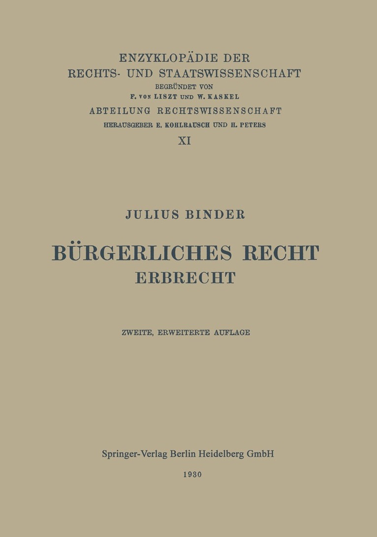 Dieser Buchtitel ist Teil des Digitalisierungsprojekts Springer Book Archives mit Publikationen, die seit den Anfängen des Verlags von 1842 erschienen sind. Der Verlag stellt mit diesem Archiv Quellen für die historische wie auch die disziplingeschichtliche Forschung zur Verfügung, die jeweils im historischen Kontext betrachtet werden müssen. Dieser Titel erschien in der Zeit vor 1945 und wird daher in seiner zeittypischen politisch-ideologischen Ausrichtung vom Verlag nicht beworben.