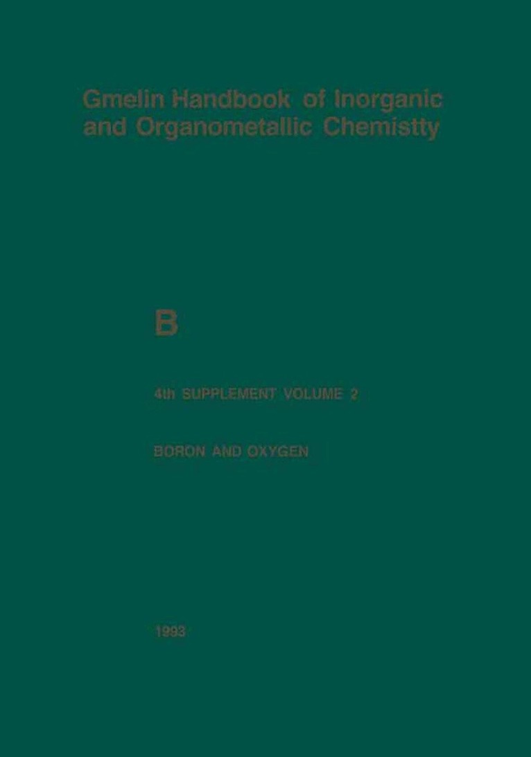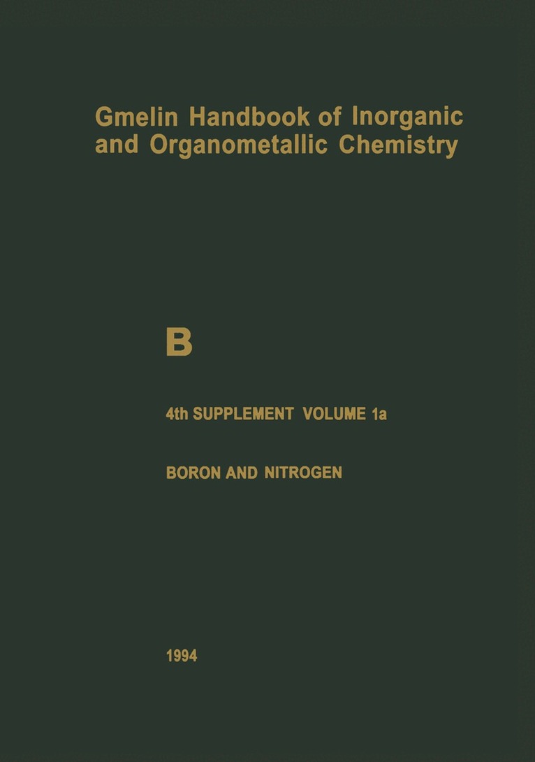 Volume 1 (systems with hydrogen and noble gases) of this particular supplement will be published subsequently, whereas Volume 3a (boron and nitrogen), Volume 3b (boron and nitrogen, boron and fluorine), and Volume 4 (boron compounds containing Cl, Br, I, S, Se, and Te, as well as a section containing carboranes) have already been published.