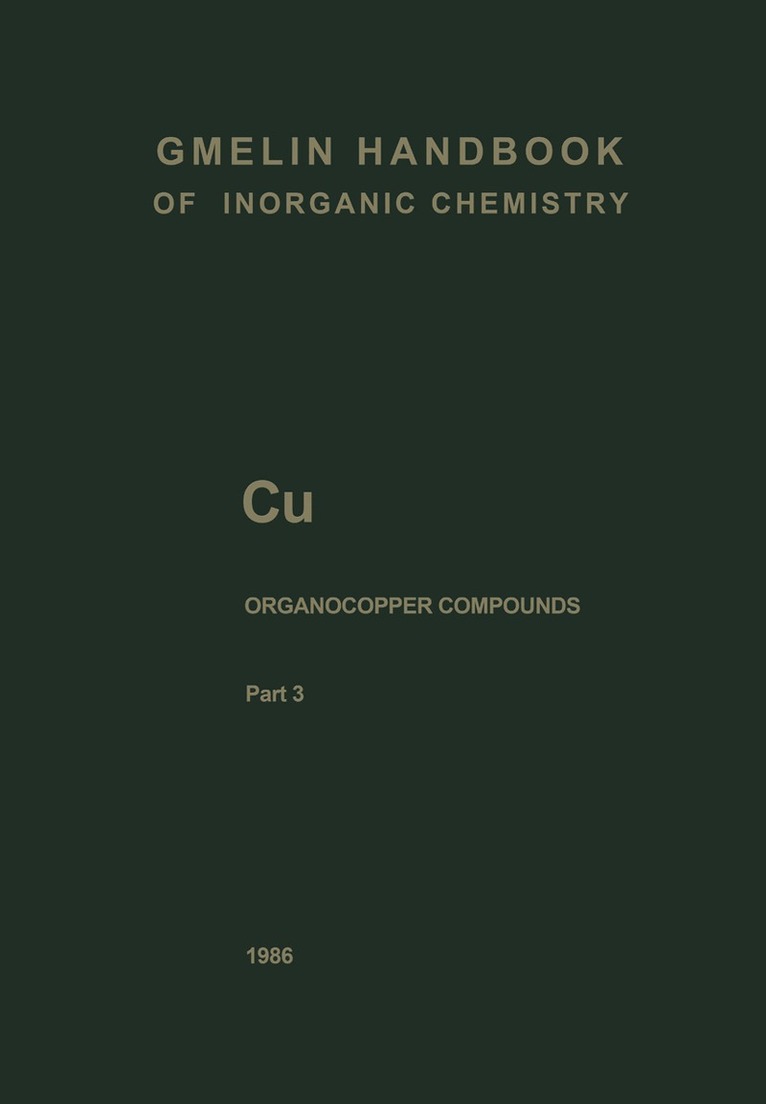 The present voLume finaLizes the coverage of mononucLear organocopper compounds with Ligands bonded by one carbon atom. As structuraL eLucidation has not yet received much attention in organocopper chemistry and the aggregation of most products is unknown, the term" mononucLear" has been used as expLained in .. Organocopper Compounds" 1, pp. 3/4. Compounds with aLkyL, aLkenyL, and aryL Ligands have aLready been described in VoL- umes 1 (pubLished in 1985) and 2 (pubLished in 1983). The present VoLume 3 contains aLL compounds with aLkynyL, carbonyL, isocyanide, and additionaL Ligands bonded by one carbon atom. The Largest part of this voLume deaLs with copper acetyLides which are wideLy used as reagents in organic syntheses aLthough many of them are onLy poorLy characterized. For abbreviations and dimensions used throughout this voLume, see p. X. Frankfurt, September 1986 Johannes FusseL Remarks on Abbreviations and Dimensions Most compounds and reagents in this volume are presented in tables. Unless otherwise stated, they are arranged in the tables according to the numbers of C atoms in the empirical formula.For the sake of conciseness, some abbreviations are used and some dimensions are omitted in the tables. This necessitates the following clarification. Geometrie isomers are designated according to the IUPAC rules. Structural labels are missing when authors fail to report structural details. Temperatures are given in C, otherwise K stands for Kelvin. Abbreviations used with temperatures are m.p. for melting point, b.p. for boiling point, and dec. for decomposition.