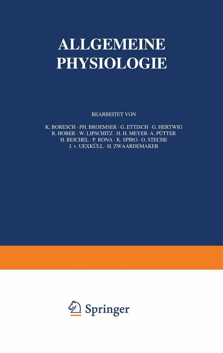 Erster Band A. Allgemeine Physiologie