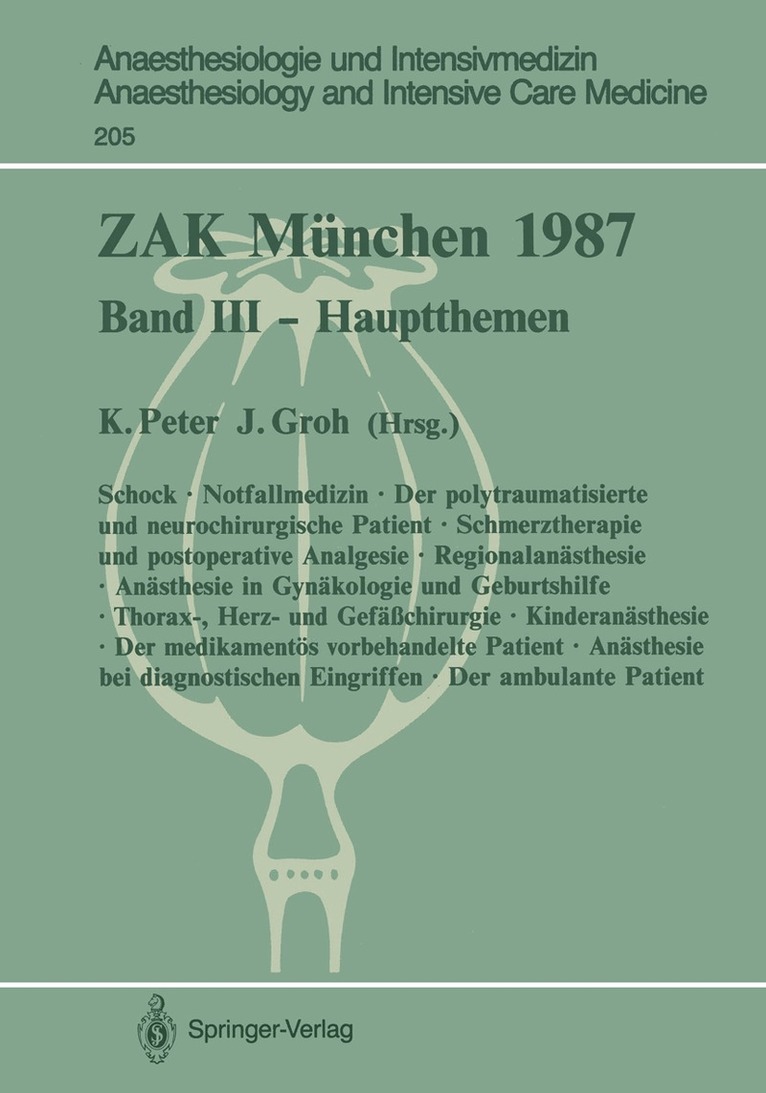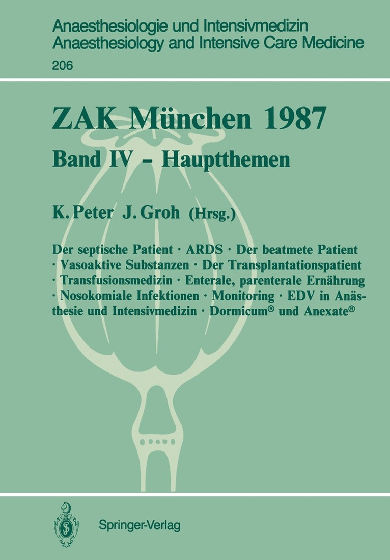Diese Bände enthalten die Vorträge zu den Hauptthemen des Zentraleuropäischen Anästhesiekongresses 1987 in München. Internationale Experten behandeln neueste Untersuchungsergebnisse auf dem Gebiet der Anästhesiologie und Wiederbelebung, der Intensivbehandlung und der Notfallmedizin und vermitteln somit dem interessierten Leser wichtige Daten für ihre tägliche Arbeit.