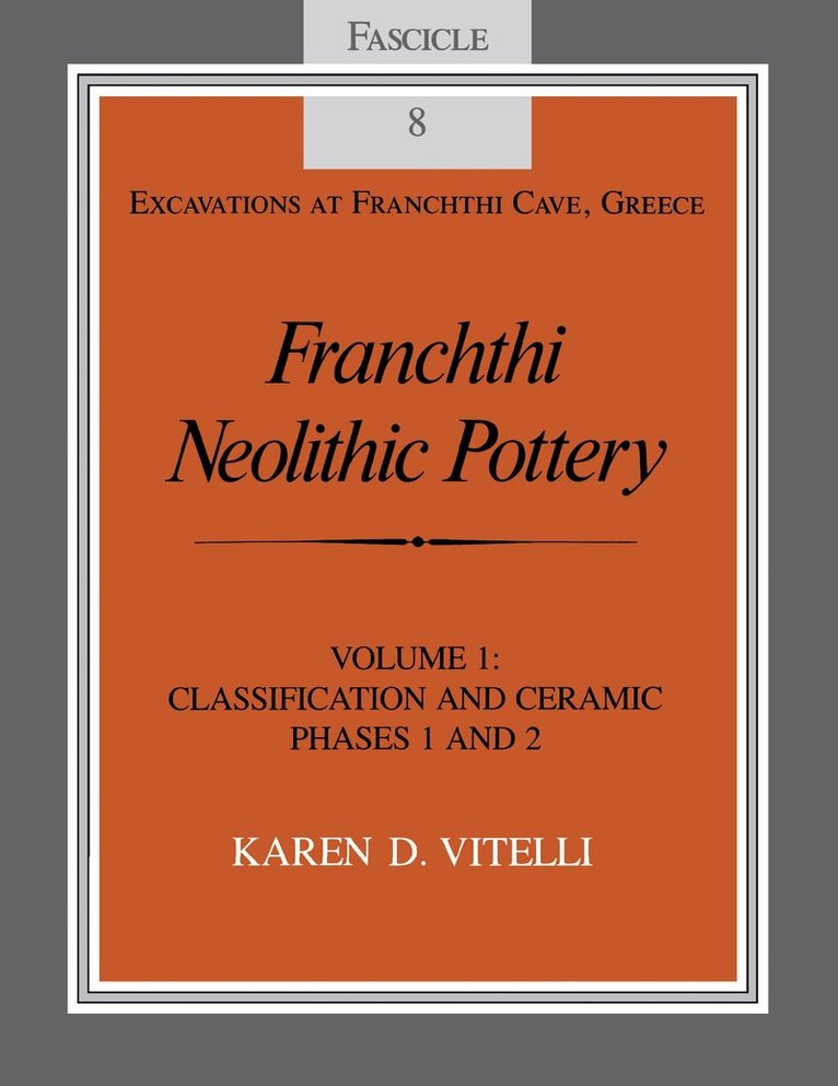 This fascicle completes the presentation of the ceramic remains from the Franchthi Cave excavations.