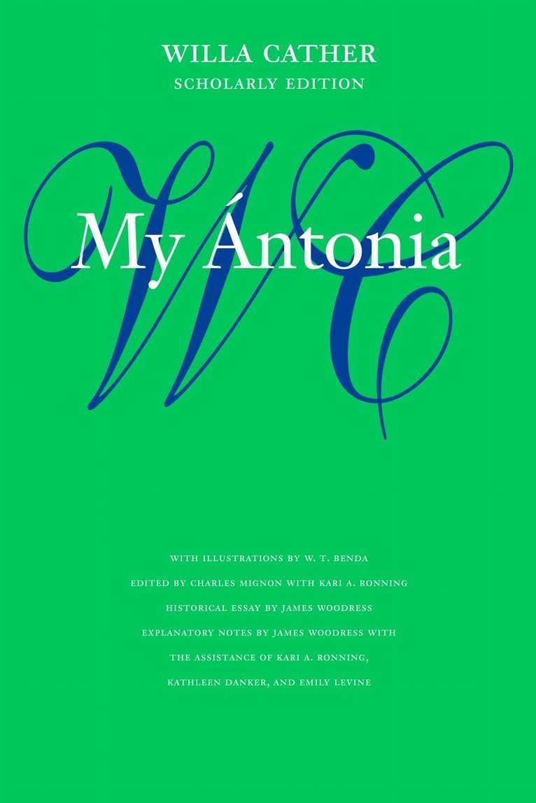 Hailed by reviewers and readers for its originality, vitality, and truth, My Ántonia secured Willa Cather's place in the first rank of American writers. Cather drew deeply on her childhood days in frontier Nebraska for her fourth novel, published in 1918. Ántonia Shimerda is memorable as the warm-hearted daughter of Bohemians who must adapt to a hard life on the desolate prairie. She survives and matures, a pioneer woman made radiant by spirit. This Willa Cather Scholarly Edition of My Ántonia is edited according to standards set by the Committee for Scholarly Editions of the Modern Language Association and it presents the full range of biographical, historical, and textual information on the novel. The selection of W. T. Benda's illustrations and the historical photography and maps also illuminate the fiction of a writer who drew so extensively on actual experience.