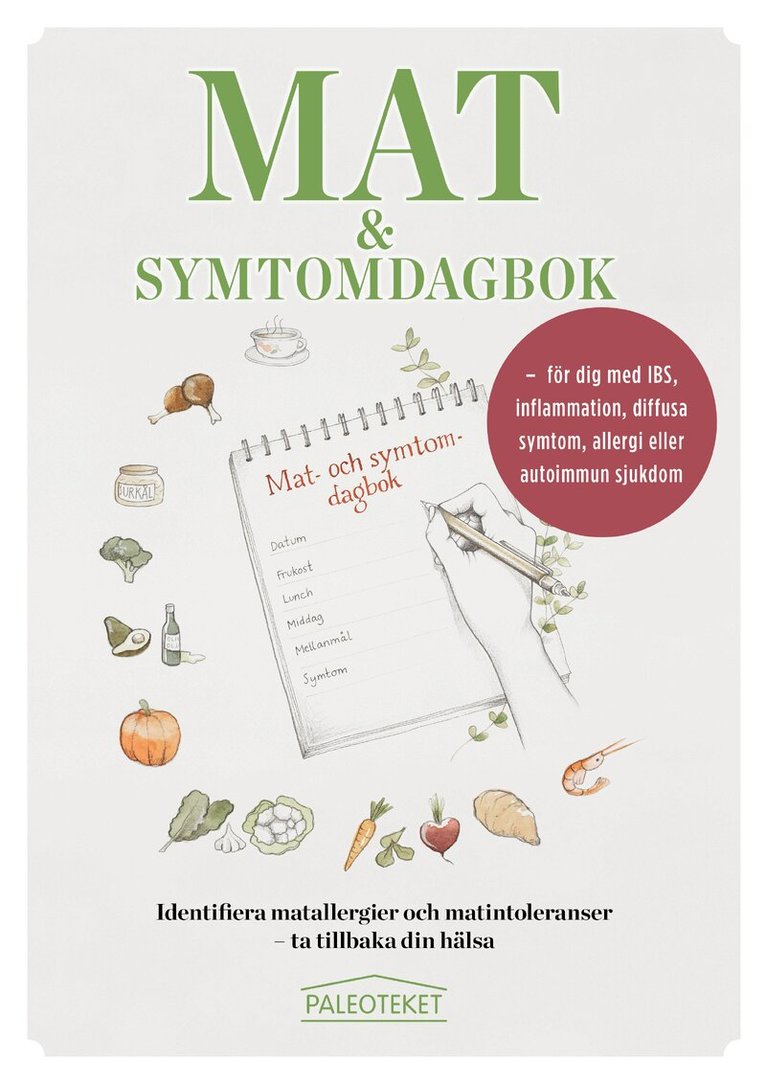 Detta är ett skrivhäfte som inkluderar daglig loggning av mat, symtom och livsstil under totalt 12 veckor + vecko- och månadsavstämning. Funkar för alla kostupplägg. Bokens struktur hjälper dig att upptäcka hur dina symtom och ditt välbefinnande påverkas av specifika livsmedel. Den lär dig också hur mycket du behöver sova och hur psykisk stress påverkar dina symtom.
