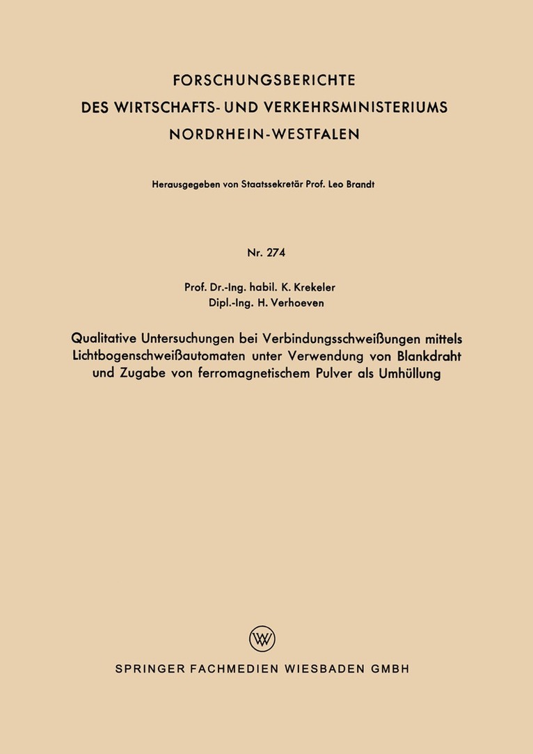 Del 274 - Forschungsberichte des Wirtschafts- und Verkehrsministeriums Nordrhein-Westfalen