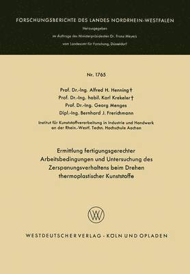Ermittlung Fertigungsgerechter Arbeitsbedingungen Und Untersuchung Des Zerspanungsverhaltens Beim Drehen Thermoplastischer Kunststoffe
