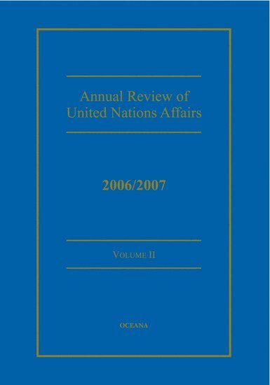 For over 25 years, The Annual Review of United Nations Affairs (ARUNA) has been the print source for researchers needing a comprehensive document collection that highlights the work of the United Nations' six principal organs each year. Recognized as the only print and bound collection for these documents, ARUNA is an essential reference for academic researchers and policy-makers. Coverage spans important resolutions and decisions, focusing on the significant documents and collaborative work of the United Nations. Selected reports of intergovernmental bodies and expert groups are also included and documents are grouped together by subject matter for easy reference. Each year, a new guest author provides an introduction to the set, analyzing the major themes covered throughout that year. ARUNA provides an in-depth view to an organization that today has more the 63,000 employees located in nearly 175 countries and is responsible for implementing the decisions of the governing bodies.This particular edition (2006-07): The past year has been one of the most tumultuous and challenging in the U.N.'s history and, indeed, in the modern history of the entire globe. This year's edition of ARUNA presents the story of that tumult as well as the story of the U.N.'s efforts to resolve both global conflicts and internal controversy. Specifically, this year's set of volumes includes documents related to the U.N.-based World Food Programme, whose management provoked an international scandal last year. However, most the 2006-07 edition of ARUNA focuses on the more critical issues affecting millions of lives around the world in the past year: the Darfur genocide, climate change, the Palestinian refugee crisis, West Africa's political and social instability. By providing the full text of both the resolutions addressing these topics and the U.N. reports concerning them, ARUNA 06/07 delivers a unique resource for students, scholars, and practitioners. The series' topic-based organization of the materials and subject index lend invaluable guidance to all researchers. This year, Dr. Edward Luck , the Director of the Center on International Organization of the School of International and Public Affairs at Columbia University, is contributing an introductory essay that will illuminate this year's varied and troubling world events.This particular volume (Vol. 2): This volume consists solely of G.A. resolutions from the second half of the G.A.'s 61st session (January to September of 2007). This collection of recent resolutions focus primarily on the following topics:BLHuman Rights abuses by the governments of Myanmar, Israel, and Iran.BLThe use of torture by officers and agents of a government.BLAfrica: development, infectious diseases, U.N. intervention in regional conflicts, the U.N.'s Centre for Human Rights and Democracy in Central Africa, U.N. funding of the Sierra Leone and Rwanda tribunals, and cooperation between the U.N. and the African Union.BLCombatting poverty worldwide.BLCombatting the defamation of Islam by media sources.BLCombatting denials of the Holocaust.BLThe imperative that governments observe human rights principles while conducting the global war against terrorism.BLThe imperative that U.N. peacekeepers refrain from sexual exploitation.BLClimate change and natural disasters.BLGlobalization, development in the poorest countries, fair trade practices, and the fight aganst poverty generally.BLThe U.N.'s internal management of its own financial practices.For more specific information regarding this title please contact Customer Service at +44(0)1536741727. About this VolumeThis particular edition (2006-07): The past year has been one of the most tumultuous and challenging in the U.N.'s history and, indeed, in the modern history of the entire globe. This year's edition of ARUNA presents the story of that tumult as well as the story of the U.N.'s efforts to resolve both global conflicts and internal controversy. Specifically, this year's set of volumes includes documents related to the U.N.-based World Food Programme, whose management provoked an international scandal last year. However, most the 2006-07 edition of ARUNA focuses on the more critical issues affecting millions of lives around the world in the past year: the Darfur genocide, climate change, the Palestinian refugee crisis, West Africa's political and social instability. By providing the full text of both the resolutions addressing these topics and the U.N. reports concerning them, ARUNA 06/07 delivers a unique resource for students, scholars, and practitioners. The series' topic-based organization of the materials and subject index lend invaluable guidance to all researchers. This year, Dr.Edward Luck , the Director of the Center on International Organization of the School of International and Public Affairs at Columbia University, is contributing an introductory essay that will illuminate this year's varied and troubling world events.For more specific information regarding this title please contact Customer Service at +44(0)1536741727.