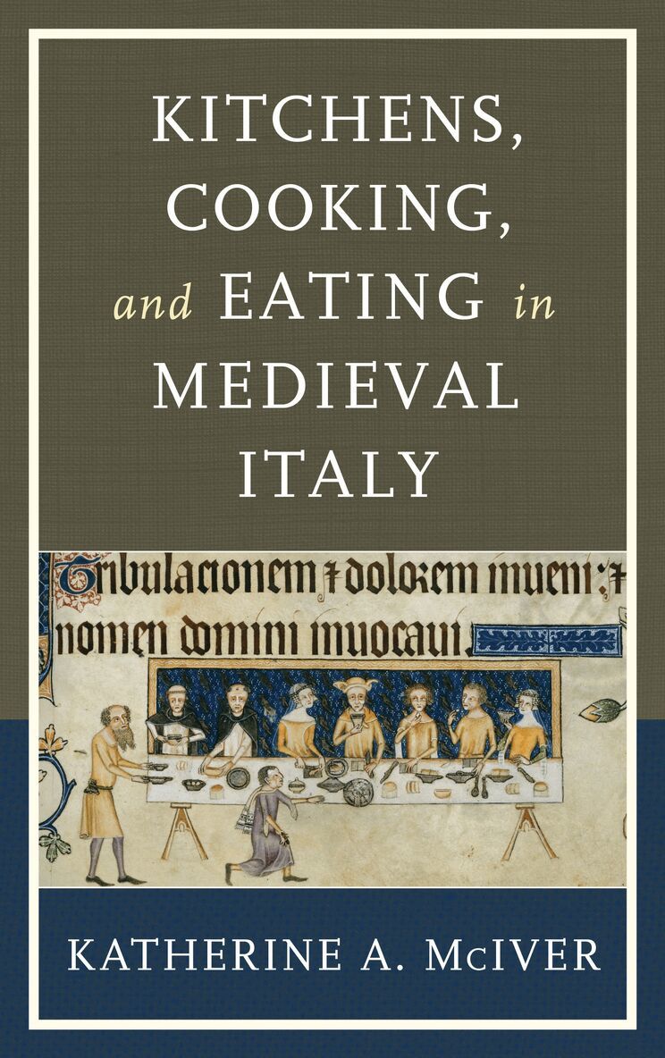 The modern twenty-first century kitchen has an array of time saving equipment for preparing a meal: a state of the art stove and refrigerator, a microwave oven, a food processor, a blender and a variety of topnotch pots, pans and utensils. We take so much for granted as we prepare the modern meal – not just in terms of equipment, but also the ingredients, without needing to worry about availability or seasonality. We cook with gas or electricity – at the turn of the switch we have instant heat. But it wasn’t always so. Just step back a few centuries to say the 1300s and we’d find quite a different kitchen, if there was one at all. We might only have a fireplace in the main living space of a small cottage. If we were lucky enough to have a kitchen, the majority of the cooking would be done over an open hearth, we’d build a fire of wood or coal and move a cauldron over the fire to prepare a stew or soup. A drink might be heated or kept warm in a long-handled saucepan, set on its own trivet beside the fire. Food could be fried in a pan, grilled on a gridiron, or turned on a spit. We might put together a small improvised oven for baking. Regulating the heat of the open flame was a demanding task. Cooking on an open hearth was an all-embracing way of life and most upscale kitchens had more than one fireplace with chimneys for ventilation. One fireplace was kept burning at a low, steady heat at all times for simmering or boiling water and the others used for grilling on a spit over glowing, radiant embers. This is quite a different situation than in our modern era – unless we were out camping and cooking over an open fire.In this book Katherine McIver explores the medieval kitchen from its location and layout (like Francesco Datini of Prato two kitchens), to its equipment (the hearth, the fuels, vessels and implements) and how they were used, to who did the cooking (man or woman) and who helped. We’ll look at the variety of ingredients (spices, herbs, meats, fruits, vegetables), food preservation and production (salted fish, cured meats, cheese making) and look through recipes, cookbooks and gastronomic texts to complete the picture of cooking in the medieval kitchen. Along the way, she looks at illustrations like the miniatures from the Tacuinum Sanitatis (a medieval health handbook), as well as paintings and engravings, to give us an idea of the workings of a medieval kitchen including hearth cooking, the equipment used, how cheese was made, harvesting ingredients, among other things. She explores medieval cookbooks such works as Anonimo Veneziano, Libro per cuoco (fourtheenth century), Anonimo Toscano, Libro della cucina (fourteenth century), Anonimo Napoletano (end of thirteenth/early fourteenth century), Liber de coquina, Anonimo Medidonale, Due libri di cucina (fourteenth century), Magninus Mediolanensis (Maino de’ Maineri), Opusculum de saporibus (fourteenth century), Johannes Bockenheim, Il registro di cucina (fifteenth century), Maestro Martino’s Il Libro de arte coquinaria (fifteenth century) and Bartolomeo Sacchi, called Platina’s On Right Pleasure and Good Health (1470). This is the story of the medieval kitchen and its operation from the thirteenth-century until the late fifteenth-century.