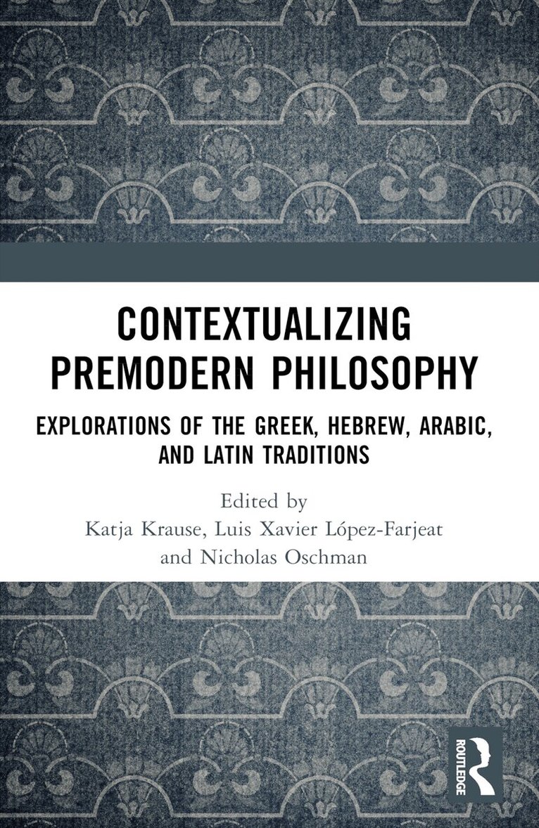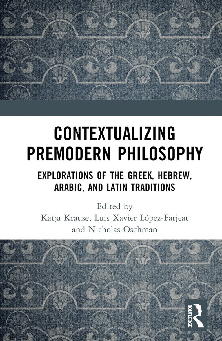 This volume brings together contributions from distinguished scholars in the history of philosophy, focusing on points of interaction between discrete historical contexts, religions, and cultures found within the premodern period. The contributions connect thinkers from antiquity through the Middle Ages and include philosophers from the three major monotheistic faiths—Judaism, Islam, and Christianity.By emphasizing premodern philosophy’s shared textual roots in antiquity, particularly the writings of Plato and Aristotle, the volume highlights points of cross-pollination between different schools, cultures, and moments in premodern thought. Approaching the complex history of the premodern world in an accessible way, the editors organize the volume so as to underscore the difficulties the premodern period poses for scholars, while accentuating the fascinating interplay between the Greek, Hebrew, Arabic, and Latin philosophical traditions. The contributors cover many topics ranging from the aims of Aristotle’s cosmos, the adoption of Aristotle’s Organon by al-Fārābī, and the origins of the□ Plotiniana Arabica to the role of Ibn Gabirol’s Fons vitae in the Latin West, the ways in which Islamic philosophy shaped thirteenth-century Latin conceptions of light, Roger Bacon’s adaptation of Avicenna for use in his moral philosophy, and beyond. The volume’s focus on "source-based contextualism" demonstrates an appreciation for the rich diversity of thought found in the premodern period, while revealing methodological challenges raised by the historical study of premodern philosophy.Contextualizing Premodern Philosophy: Explorations of the Greek, Hebrew, Arabic, and Latin Traditions is a stimulating resource for scholars and advanced students working in the history of premodern philosophy.