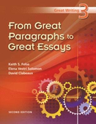 The Great Writing series uses clear explanations and extensive practical activities to help students write great sentences, paragraphs, and essays. Each book contains a wide variety of writing models in carefully selected rhetorical styles that provide practice in working with the writing process to develop a final piece of writing.Great Writing 3: From Great Paragraphs to Great Essays takes a step-by-step approach that centers on the essential processes and organizational strategies of teaching students how to effectively transition from paragraphs to essays.