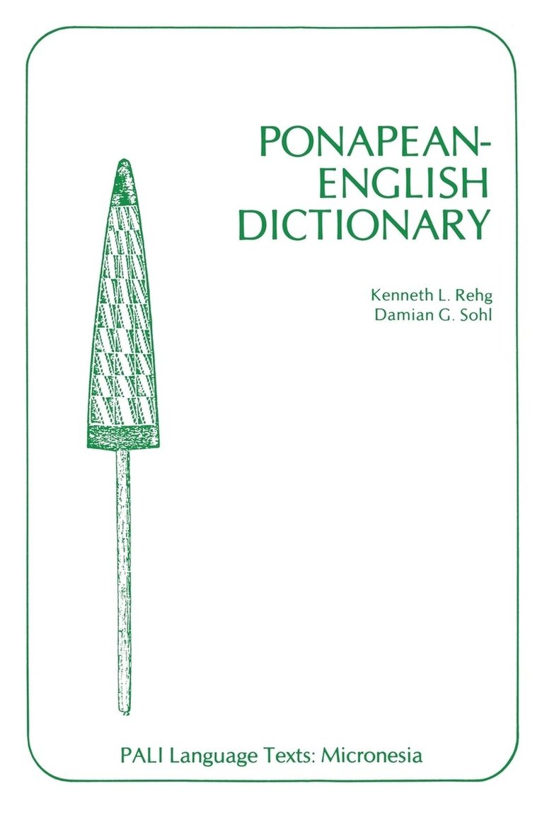 The Ponapean-English Dictionary contains approximately 6,750 Ponapean to English entries. Each entry includes a headword, grammatical information, and one or more English definitions. Where appropriate, alternate spellings of headwords, usage labels, phrase and sentence examples, loan source information, and cross-references to related workds are also provided. An English to Ponapean finder list containing approximately 4,200 entries is also included to enable the user to locate key English words used in the definitions in the Ponapean entries.Designed to serve as a reference volume for native speakers of the language, particularly for Ponapean educators working in bilingual programs, this work will also be of value to English-speaking students of Ponapean and to scholars of other Pacific languages and cultures.This dictionary was prepared as a companion volume to the Ponapean Reference Grammar by the same authors.
