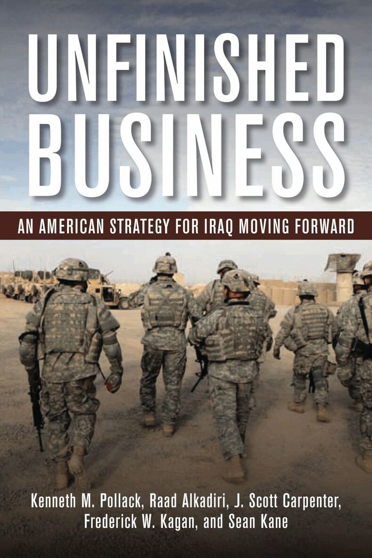 Iraq still hangs in the balance. The dramatic improvements in Iraqi security between 2007 and 2009 have produced important, but incomplete changes in the nation's politics. These changes make it possible to imagine Iraq slowly muddling upward, building gradually toward a better future. But we must be constantly on guard against the considerable potential for Iraq to slip into all-out civil war. There are dozens of scenariosfrom military coups, to official misconduct, to the assassination of one or two key leaders that could spark such violence.In Unfinished Business, a team of five experts from across the political spectrum analyze the situation in Iraq. They present a well-reasoned and feasible path for U.S. policy toward Baghdadone that would give priority to preventing Iraq from slipping into civil war or becoming an aggressive state but that would also lead to a clear American goal: a new, strong, and prosperous ally in the Middle East.Ultimately, the United States must condition the continuation of the U.S.-Iraqi relationship on the willingness of Iraqi political leaders to guide their country in the direction of greater stability, inclusivity, and effective governance.
