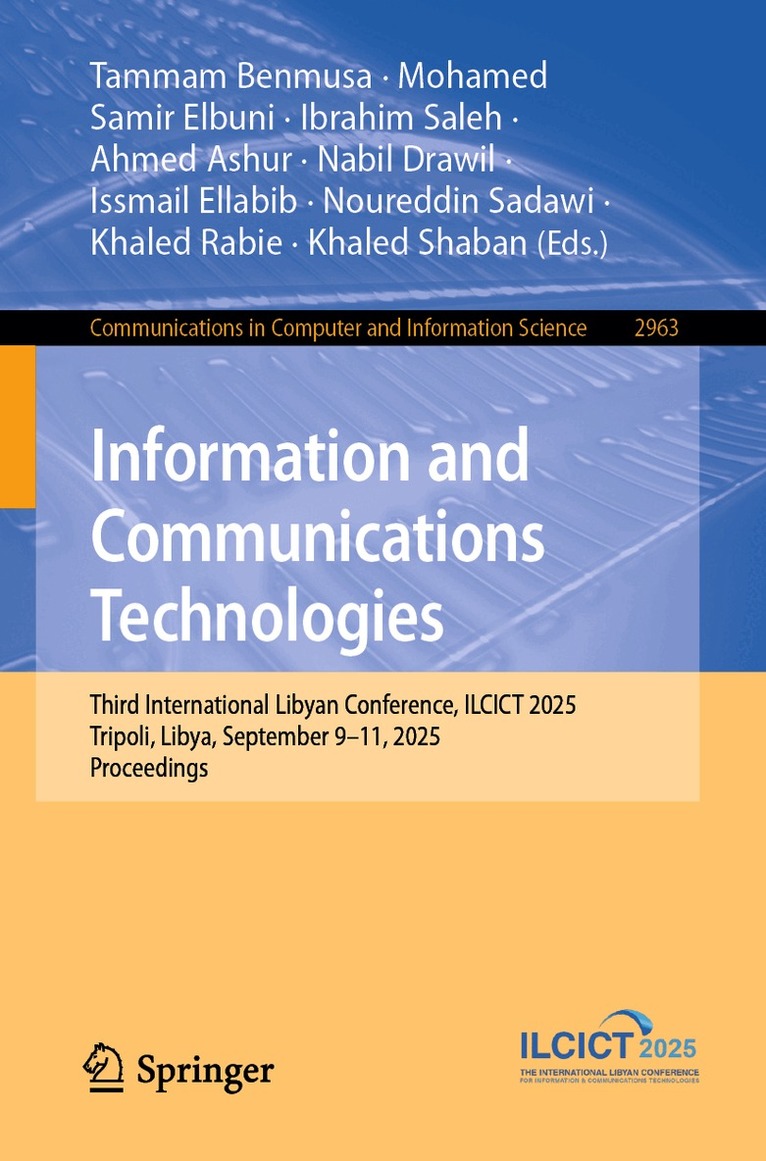 This book constitutes the refereed proceedings of the Third International Libyan Conference on Information and Communication Technologies, ILCICT 2025, held in Tripoli, Libya, during September 9–11, 2025.The 40 full papers presented in this volume were carefully reviewed and selected from 82 submissions. They are organized into the following topical sections: Communication Systems; Computer and Information Systems; Artificial Intelligence in ITC; and Cyber Security.