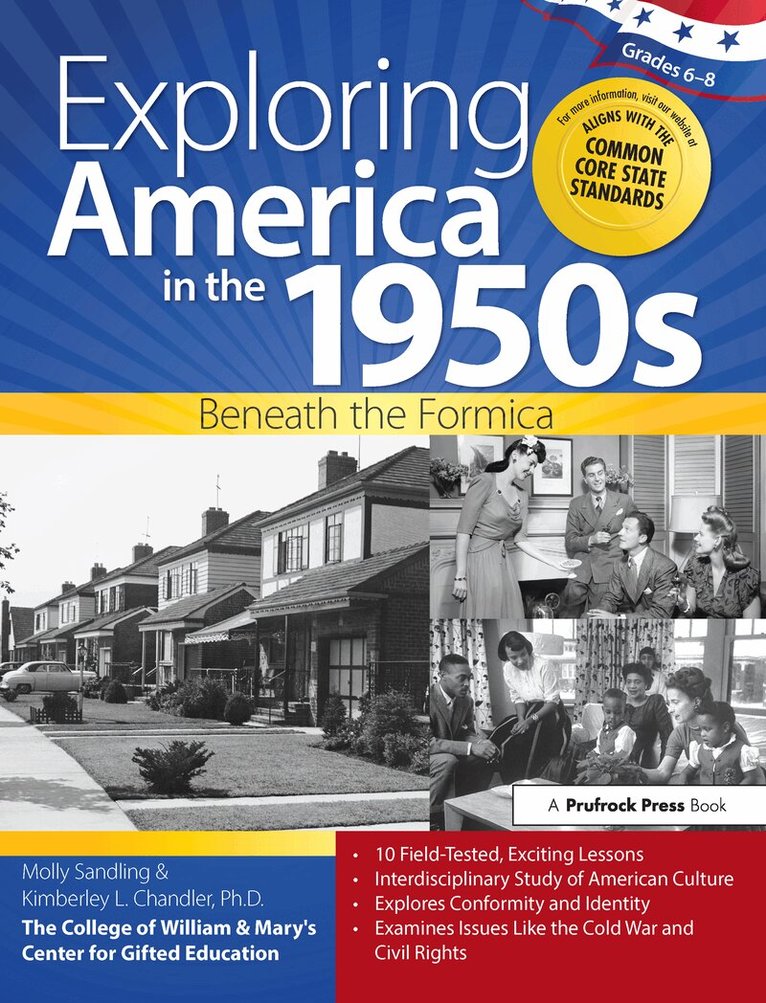 Exploring America in the 1950s: Beneath the Formica is an interdisciplinary humanities unit that looks at literature, art, and music of the 1950s to provide an understanding of how those living through the decade experienced and felt about the world around them. Through the lens of "identity," it explores life in America and the myriad groups that coexisted in harmony and, often, with friction. Cultural icons like Elvis and the Beat poets are examined alongside larger issues such as the Cold War, conformity, and Civil Rights struggles. The unit uses field-tested instructional strategies for language arts and social studies from The College of William and Mary, as well as new strategies, and it includes graphic organizers and other tools for analyzing primary sources. It can be used to complement a social studies or language arts curriculum or as standalone material in a gifted program.Grades 6-8
