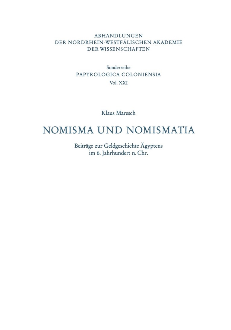 Beiträge zur Geldgeschichte Ägyptens im 6. Jahrhundert n. Chr.