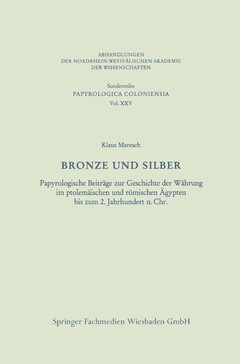 Papyrologische Beiträge zur Geschichte der Währung im ptolemäischen und römischen Ägypten bis zum 2. Jahrhundert n. Chr.