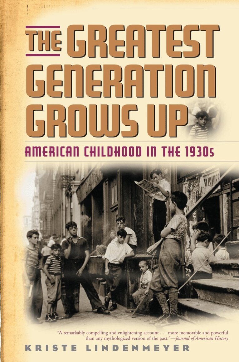 What was it like growing up in the Great Depression, and how did America's youngest citizens contribute to the history of that fateful decade? In The Greatest Generation Grows Up, Kriste Lindenmeyer shows that the experiences of depression-era children help us understand the course of the 1930s as well as the history of American childhood. For the first time, she notes, federal policy extended childhood dependence through the teen years while cultural changes reinforced this ideal of modern childhood. Grade-based grammar schools and high schools expanded rapidly, strengthening age-based distinctions among children and segregating them further from the world of adults. Radio broadcasters, filmmakers, and manufacturers began to market their products directly to children and teens, powerfully linking consumerism and modern childhood. In all, the thirties experience worked to confer greater identity on American children, and Ms. Lindenmeyer's story provides essential background for understanding the legacy of those men and women whom Tom Brokaw has called "America's greatest generation." While many children suffered terribly during these years—and are remembered vividly in the Farm Security Administration's stunning photographs of the era—Ms. Lindenmeyer argues that an exclusive focus on those who were ill-housed, ill-fed, and ill-clothed neglects the contributions and widely varied experiences of American youngsters. The decade's important changes touched the lives of all children and teenagers. By 1940, the image of an idyllic modern childhood had been strengthened in law and confirmed in culture by the depression years. With 21 black-and-white illustrations.