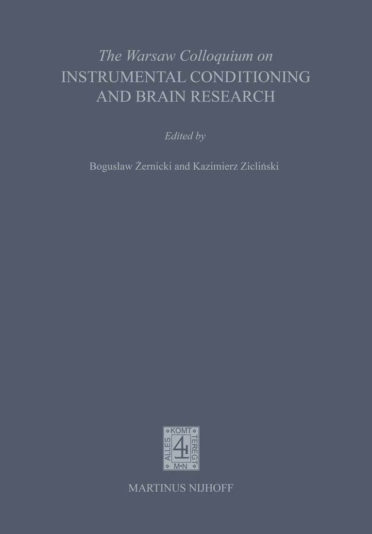 The book contains the proceedings of The Warsaw Colloquium on Instrumental Conditioning and Brain Research held in Jablonna near Warsaw on May 1-5, 1979. The proceedings are also published in the sixth issue of 1979 and the first issue of 1980 of Acta Neurobiologiae Experimentalis. Three papers published later, in the fourth issue of 1980, are also included. The aim of this Symposium was to honour the memory of the great Polish neurophysiologist Jerzy Konorski and the sixtieth anniversary of the Nencki Institute, where Professor Konorski has created his school. Forty-five papers, prepared mainly by Konorski's pupils and scientific friends, cover several fields of current brain research. To each of them Professor Konorski contributed significantly. In fact, many presented papers have been strongly influenced by his scientific ideas. Perhaps the most conspicuous feature of the Symposium was its very international character due to numerous participants from both East and West. As such, the Symposium is a worthy symbol of the aehievements of both Jerzy Konorski himself and the Neneki Institute as a whole in the field of cooperation of scientists from East and West. Scientific sessions were held in the mornings and afternoons. In the evenings the participants mutually read and commented their papers. Moreover, colleagues from the USA and Great Britain eorrected the English of the manuscripts. In partieular Prof. J. F. Brennan, Prof.