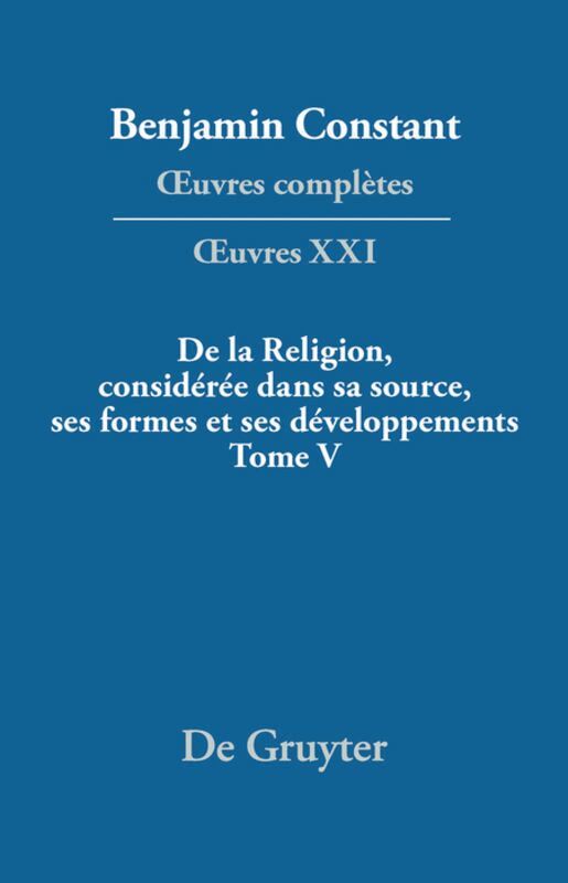 The volume 21 of the Complete Works comprises the 5th and last part of On Religion. The critical apparatus and the "Additional texts" section take into account all available manuscripts to-date. The volume also includes an introduction, explanatory notes, a bibliography, as well as an index of names.