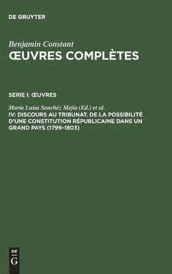 OEuvres complètes, IV, Discours au Tribunat. De la possibilité d'une constitution républicaine dans un grand pays (1799-1803)