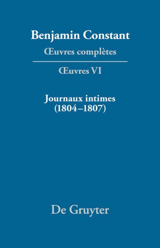 Volume VI of the »Complete Works« contains the first two of the Intimate Journals, the full-length Journal (1804-1805) and the abridged version (1804-1807), complete with an exhaustive description of notable features in the manuscripts and a set of notes far broader in scope than those of the first edition (1952). The Journals are followed by a hitherto unedited dossier kept by Constant on the financial differences between himself and his father. This document, titled »Affaire de mon père«, enhances our understanding of the complex relations between the two men. The volume also provides a useful critical apparatus including a chronology, a list of works cited by Constant, a bibliography, indexes of personal and place names, etc.