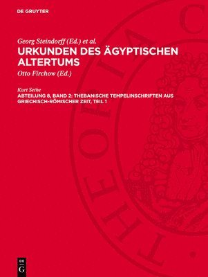Urkunden Des Ägyptischen Altertums. Abteilung 8: Thebanische Tempelinschriften Aus Griechisch-Römischer Zeit. Band 1