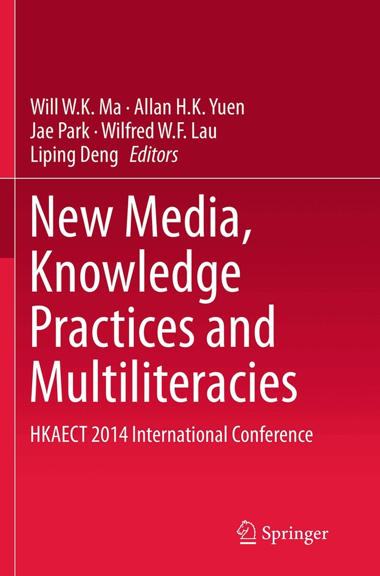 This volume highlights key aspects of new media, knowledge practices and multiliteracies in communication and education, providing readers with a range of empirical findings, novel theories and applications. The reports also include best practices, case studies, innovative solutions and lessons learned with regard to three core fields: (1) New media: discussions on the effects of traditional and new media, legal risks concerning social media, the effects of media intervention on help-seeking attitudes, obstacles of using tablets for learning, qualitative interpretation of media reporting, use of social media for enhancing design practices, and news-reading habits; (2) Knowledge practices: exploration of online viewing and lifestyles, reform of school management models, undergraduate students’ mathematics learning experiences, perceived accounting ethics and online knowledge sharing, creating knowledge repositories, digital technologies outside school, smartphone usage and life satisfaction, and cultural differences and isomerism; and (3) Multiliteracies: studies on learning style inventories, the impact of ICT in interdisciplinary approaches, ePortfolios for learning, video production and generic skills enhancement, mobile-assisted collaborative learning, and the effects of project-based learning on student achievements. The reports presented are from various countries and organizations.