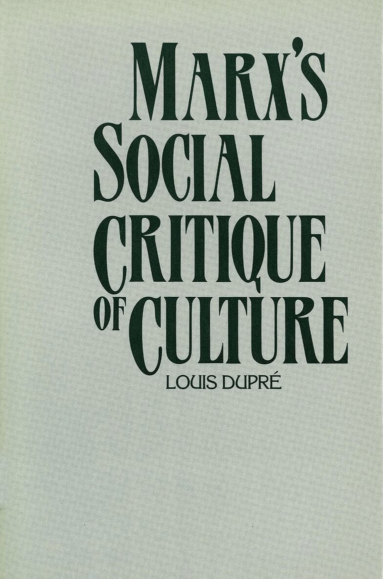 This study sheds new light on Marx’s achievement by presenting a critical reading of his interpretation of culture. Dupré discusses the relation of Marx to previous philosophers, especially Hegel; the stages of development and contradictions within Marx’s conception of culture; and the contributions of the various Marxists who followed Marx.“An intelligent, discerning, and carefully nuanced reading of Marx. . . . Dupré presents a fluidity and diversity that is lacking in many other interpretations of Marx.”-- Peter Stillman, The American Political Science Review“What makes the book notable is that it handles its subject more clearly, thoroughly, and indeed elegantly than most of its predecessors.”-- Michael J. Kerlin, Theological Studies“Dupré is undoubtedly one of the most knowledgeable scholars of Marxism. . . . His study counts among the best ones written on the modern Prometheus.” -- Max Wildiers, De Standard“A major work on Marx, displaying familiarity with the vast scope of his work and characterized by thoughtful and insightful analysis.” -- Carol Gould“This book is very learned, well-written and readable. . . . Its value lies in its attempt to subordinate the basic tenets of Marx’s thought to the question of how man’s cultural activity is to be understood within the general framework of Marxism and how some of Marx’s ideas concerning culture can be adapted apart from the dogmas of ‘historical materialism.’”-- Leszek Kolakowski