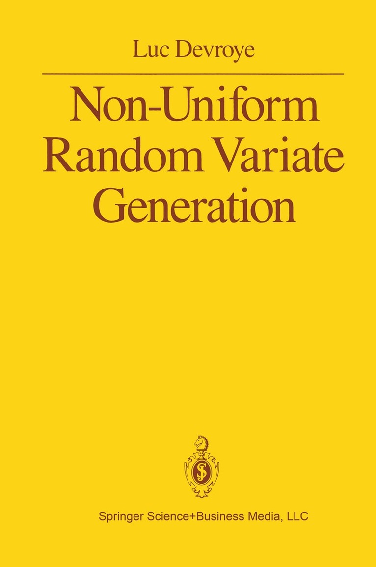 Thls text ls about one small fteld on the crossroads of statlstlcs, operatlons research and computer sclence. Statistleians need random number generators to test and compare estlmators before uslng them ln real l!fe. In operatlons research, random numbers are a key component ln !arge scale slmulatlons. Computer sclen- tlsts need randomness ln program testlng, game playlng and comparlsons of algo- rlthms. The appl!catlons are wlde and varled. Yet all depend upon the same com- puter generated random numbers. Usually, the randomness demanded by an appl!catlon has some bullt-ln structure: typlcally, one needs more than just a sequence of Independent random blts or Independent uniform [0,1] random vari- ables. Some users need random variables wlth unusual densltles, or random com- blnatorlal objects wlth speclftc propertles, or random geometrlc objects, or ran- dom processes wlth weil deftned dependence structures. Thls ls preclsely the sub- ject area of the book, the study of non-uniform random varlates. The plot evolves around the expected complexlty of random varlate genera- tlon algorlthms. We set up an ldeal!zed computatlonal model (wlthout overdolng lt), we lntroduce the notlon of unlformly bounded expected complexlty, and we study upper and lower bounds for computatlonal complexlty.In short, a touch of computer sclence ls added to the fteld. To keep everythlng abstract, no tlmlngs or computer programs are lncluded. Thls was a Iabor of Iove. George Marsagl!a created CS690, a course on ran- dom number generat!on at the School of Computer Sclence of McG!ll Unlverslty.
