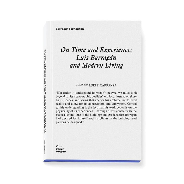 A book that invites readers not merely to look at architecture, but to experience it: On Time and Experience: Luis Barragán and Modern Living opens up an unfamiliar approach to one of the most fascinating bodies of work of the twentieth century.Rather than reproducing well-known images or iconic perspectives, Luis E. Carranza directs attention to those sensorial qualities that reveal themselves only through direct engagement with space and material. He explores how the built environment generates atmosphere - through light, color, texture, and intimacy - and demonstrates why these quiet, subtle experiences form the core of an architectural thinking that remains relevant today.