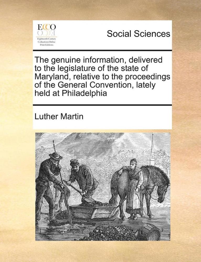 Genuine Information, Delivered to the Legislature of the State of Maryland, Relative to the Proceedings of the General Convention, Lately Held at Philadelphia