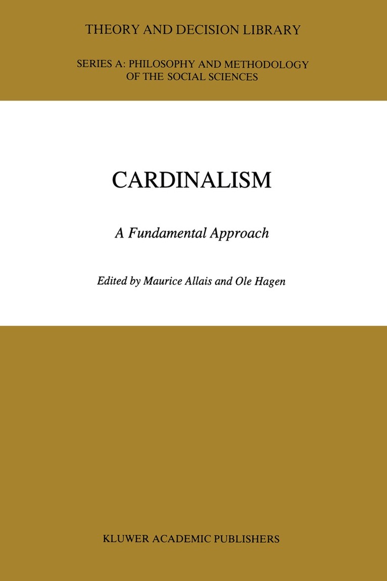THE CONCEPTION OF THIS VOLUME This volume, Cardinalism, has been initiated by Ole Hagen, and is now published due to his perseverance and to Kluwer Academic Publishers. Because of various activities and duties, my contribution to the general conception of this volume has only been formal, and all the credit for it is due to Ole Hagen. I should also emphasize that the responsibility for the year's delay in the publishing of this volume is entirely mine, for two reasons. First of all, I have been involved in many works in very different fields. Second, the English translation of my 1943 contribution to the concept of cardinal utility took some time. The points of view the reader will find in this volume are often different and sometimes contradictory, but this can only increase the interest of its reading. In any case, this is not the editors' part to side with or against. Thus contributions to this volume are presented as they have been submit ted to the editors. Of course, this does not mean that they entirely agree with the analyses presented. MAURICE ALLAIS M. Allais and O. Hagen (eds.), Cardinalism, vii INTRODUCTION Everyone's conscious choices are assumed to reflect their preferences in different situations. For some purposes it serves the theorist's preference for simplicity to assume that a person's life style can be described by the values of some concrete variables, such as quantities of goods available.