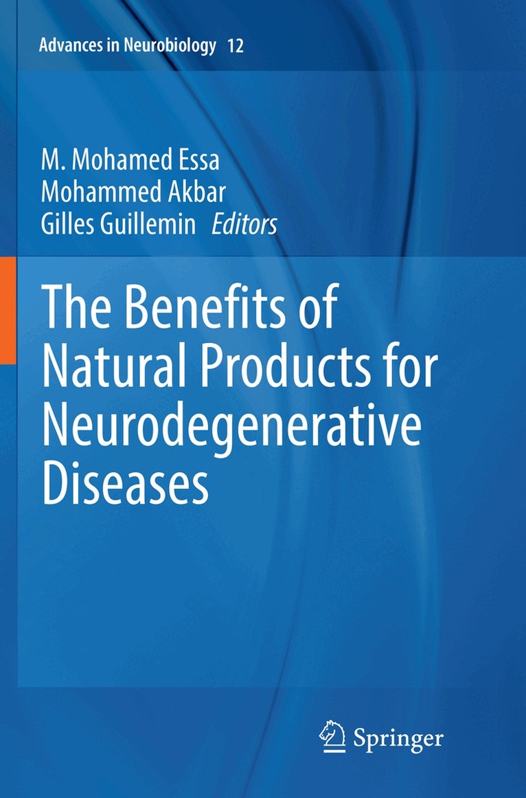 Focuses on the effects of natural products and their active components on brain function and neurodegenerative disease prevention. Phytochemicals such as alkaloids, terpenes, flavanoids, isoflavones, saponins etc are known to possess protective activity against many neurological diseases. The molecular mechanisms behind the curative effects rely mainly on the action of phytonutrients on distinct signaling pathways associated with protein folding and neuro-inflammation. The diverse array of bioactive nutrients present in these natural products plays a pivotal role in prevention and cure of various neurodegenerative diseases, disorders, or insults, such as Alzheimer's Disease, Parkinson's Disease, Huntington's Disease, traumatic brain injury, and other neuronal dysfunctions. However, the use of these antioxidants in the management of neurodegenerative conditions has so far been not well understood. This is a comprehensive collection addressing the effects on the brain of natural productsand edible items such as reservatrol, curcumin, gingerol, fruits, vegetables, nuts, and marine products.