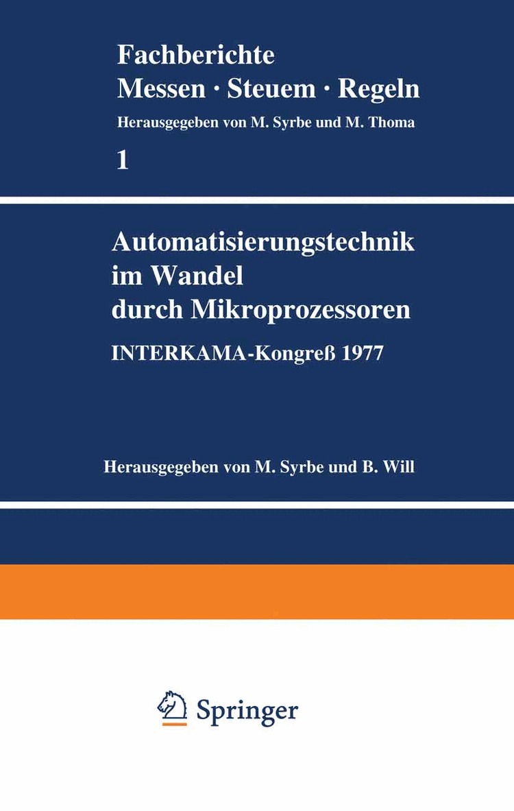 Ein integrierter elektronischer Halbleiter-Baustein mit 12 000 Transistoren kostet heute weniger als vor 12 Jahren ein einzelner Transistor. 1 Million Bauelemente je Halbleiter-Baustein werden fur 1980 prognostiziert. Diese hochintegrierten Halbleiter, insbesondere in Form von Mikro- prozessoren, fuhren zu einem weiteren Innovationsschub im Bereich der MeB- und Automatisierungstechnik. Die Auswirkungen sind viel- faltig und tiefgreifend. Die Produkte, ihre Herstellungsverfahren sowie ihre Anwendungsformen und Anwendungsmoglichkeiten andern sich. Hersteller und Anwender mussen jeweils ihren Weg, Chancen zu nutzen, aber auch Ruckschlage zu vermeiden, finden. AnlaBlich des INTERKAMA-Kongresses'77 haben sich namhafte Fachleute aus Wissen- schaft und Wirtschaft als Autoren und Betreuer bemuht, fur die besonders betroffenen Bereiche der Automatisierungstechnik den Wandel aufzuzeigen, der durch den Einsatz hochintegrierter Elektro- nik hervo~gerufen wird.Stand und Entwicklung in diesen Bereichen werden in Form von zugeordneten Themengruppen dargelegt, die aus einem allgemein verstandlichen, aber konkrete Fakten enthaltenen ubersichtsvortrag und aus meist drei vertiefenden Fachvortragen bestehen. oer geschilderte Innovationsschub bestimmte die Auswahl der 8 Be- reiche und damit Themengruppen. Mikroprozessoren eroffnen auch komplexeren theoretische~ Verfahren hoher Leistungsfahigkeit An- , i.~ , ...~ ,. . wendungsbereiche. Bewahrte Losungen konnen erganzt, beziehungsweise wartungsfreundlicher gestaltet werden. Die Themengruppen "MeBtech- nik und Mustererkennung in der Fertigungstechnik", "Automatisie- rung von MeB- und Prufsystemen" und "Einsatz fortgeschrittener Regelungsverfahren" gehen hierauf ein. Mikroprozessoren in Verbin- IV dung mit Bildschirmen und Sammelleitungssystemen, abgestutzt auf anthropotechnische ErkenntnisSB und neue Programmierverfahren ver- and ern die Strukturen von Automatisierungssystemen und die Mensch- Maschine-Schnittstellen. Die Themengruppen "Warten und Leitstande" und "Raumlich verteilte ProzeBrechnersysteme" berichten hieruber.